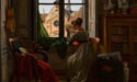 标题:Interior with Young Woman Tracing a Flower(室内画:年轻女子在临摹花卉)