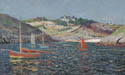 前景中,四艘渔船已抛锚停泊,艺术家显然乐在描绘它们色彩斑斓的船帆。这幅构图极为简洁的作品具有强烈的印象派特征,仿佛是即兴创作而成。