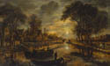 荷兰画家 阿尔特·范德尼尔 Aert van der Neer 名作(代表作)《夜色运河渔舟景致》