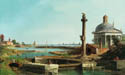 意大利画家 卡纳莱托 Canaletto 名作(代表作)《一扇闸,一根柱子,一座教-堂,毗邻泻湖》