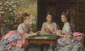 三位姐妹 --- 伊丽莎白(Elizabeth)、戴安娜(Diana)和玛丽(Mary)--- 正在玩纸牌。游戏与作品标题暗喻着她们谁将率先出嫁的竞争,将求爱描绘成这些女性正在学习的游戏。这在当时被视为女性的重要课题。作家兼艺术收藏家沃尔特·阿姆斯特朗(Walter Armstrong)委托约翰·埃弗里特·米莱斯(约翰·埃弗雷特·米莱斯爵士(John Everett Millais)为其女儿们创作此肖像画,期望借此提升家族社会地位。米莱斯(Millais)借鉴了当时一幅流行照片的标题与构图。(枫荣翻译,如有不准确请谅解)