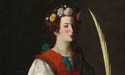 很少有人能像弗朗西斯科·德·苏巴朗(Francisco de Zurbarán)那样,将圣人画像描绘成如此华美动人的女性形象。他的《圣露西》(Saint Lucy)这幅画将这位年轻的殉道者描绘成一位来自塞维利亚(Seville)的普通女性。她佩戴着珠宝,精心梳理着头发,展示出了她那令人震惊的特征 --- 一个用锡制盘子盛着的、自然主义绘制的栩栩如生的眼球。