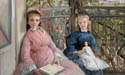 丹佛艺术博物馆藏《窗前》(The Window (La Fenêtre) )(1865–70)展现了与《小士-兵》(The Little Soldier)截然不同的艺术风格 --- 她效仿印象派同行,以更松散的笔触和柔和的色调作画。在这幅悠闲的画面中,两名少女坐在阳台上:一人手捧摊开的书本,另一人抱着洋娃娃,两人都似乎心不在焉。前景中那摞小书很可能是对冈萨雷斯(Gonzalès)深爱的小说家父亲的视觉致敬。