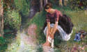 法国印象派画家 毕沙罗 Camille Pissarro 名作《在小溪中洗脚的女人》