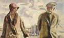 1937年4月22日的《晨邮报》将此画背景描述为布罗德斯泰尔斯海滩(sands at Broadstairs) --- 西克特夫妇(Sickerts)1934年迁居之地,但亦可能是布莱顿(Brighton)或霍夫(Hove)。画面中,西克特(Sickert)与妻子泰蕾兹·莱索尔(Thérèse Lessore)(同为画家,系西克特第三任妻子)正沿着石板路大步前行,身后是排排海滩小屋。他蓄着修剪整齐的胡须,身着宽松粗花呢套装,头戴平顶帽,腋下夹着手杖。与西克特(Sickert)多数作品相似,此画亦取材于照片创作。(枫荣翻译,如有不准确请谅解)